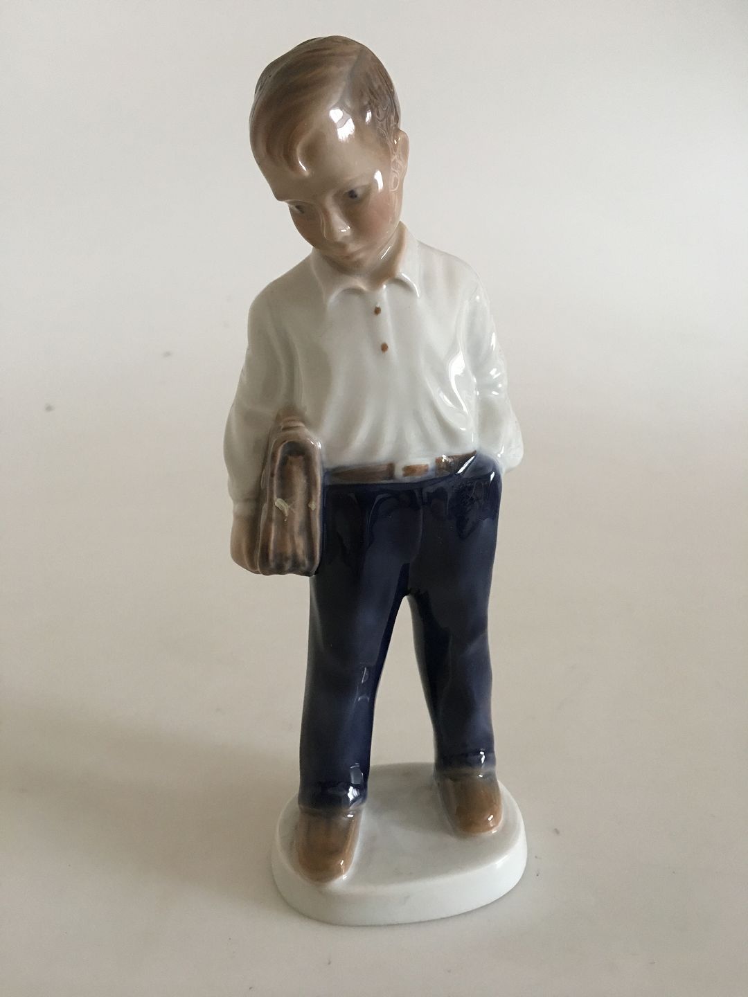 Lyngby Porcelain Figurine of a school Boy 19cm. In perfect condition