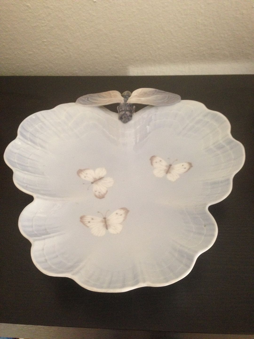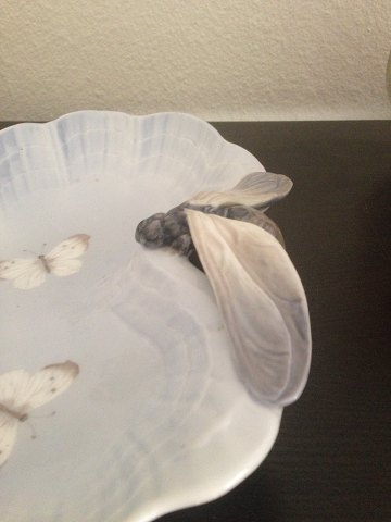 Royal Copenhagen Art Nouveau Dish with Dragonfly No 1. Measures 26cm. Has a repair on the tail and underside of dish. Otherwise good condition.
