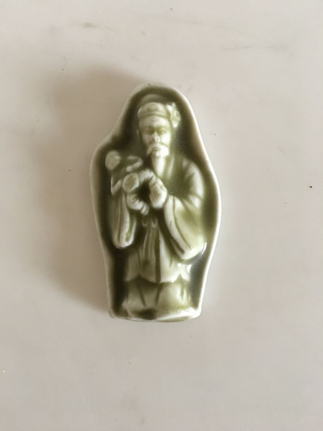 Royal Copenhagen Stoneware Relief Figurine of Japanese Monk with child. Glaze Trial. Measures 9cm.