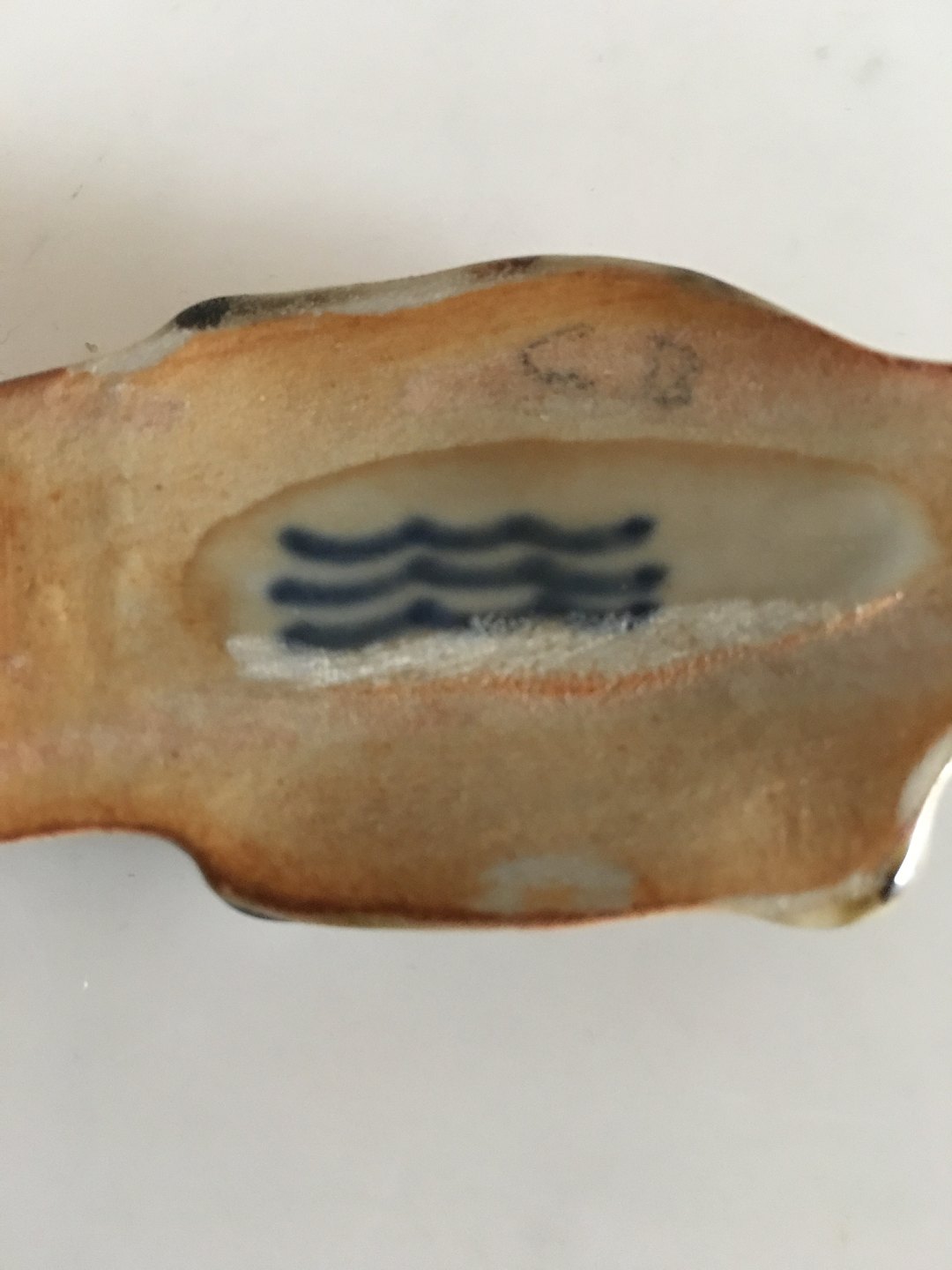 Royal Copenhagen Stoneware Relief Figurine of Japanese Monk with child. Glaze Trial. Measures 8,3cm