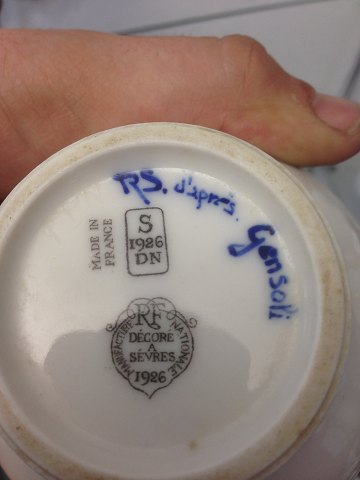 Sevres Art Deco Vase in Porcelain by Gensoli with bird motif from 1926. Measures 12,4cm
