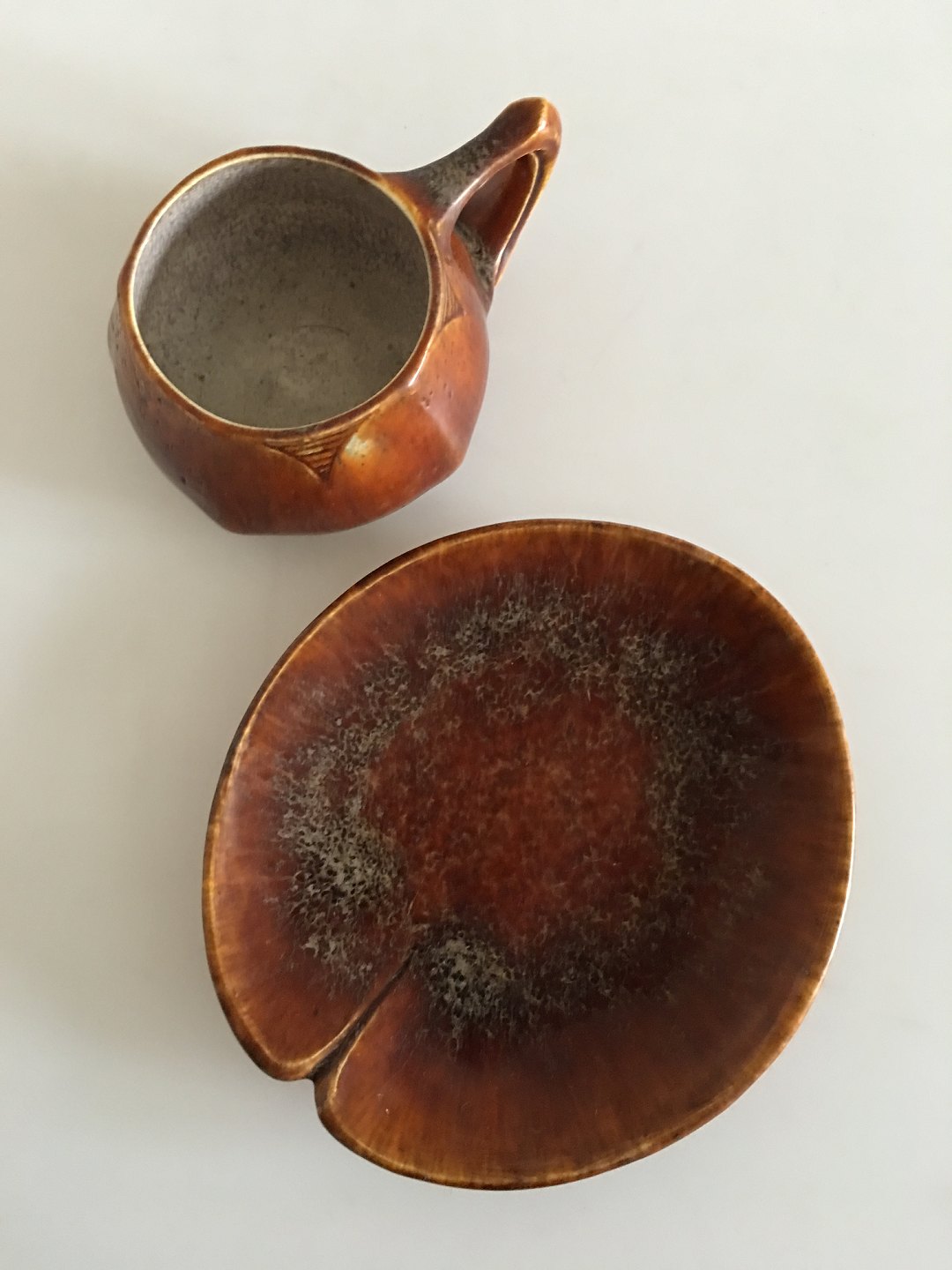 Emile Decaeur cup and saucer. Cup measures 2 1/4" and saucer 5 1/2". In perfect condition.EMILE DECOEUR lived from 1876-1953. Piece is perfect condition and is signed Decoeur on the cup and E Decoeur on the saucer.