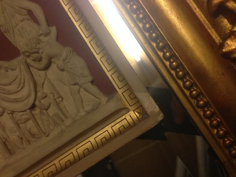 Peter Ipsen Terracotta Relief of "The ages of Love" by Bertel Thorvaldsen No 391. With greek key patern on the edge. Measures 47 x 20cm (18.50 x 7.87 inch). Has a few chips, se pictures.