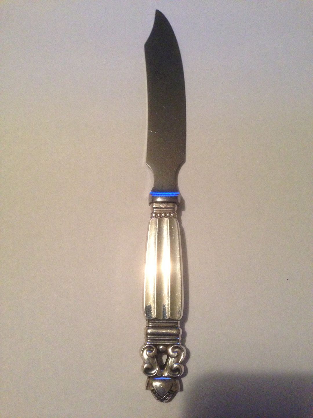 Georg Jensen Acorn Sterling Silver Cheese Knife No 221. Measures 20.5cm.(8.07 in)