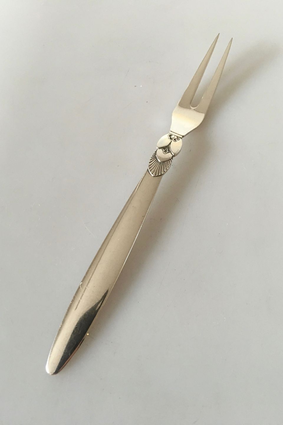 Georg Jensen Sterling Silver Cactus Cold Cut Fork No 144. Measures 15.5 cm / 6 7/64". Design Gundorph Albertus 1930