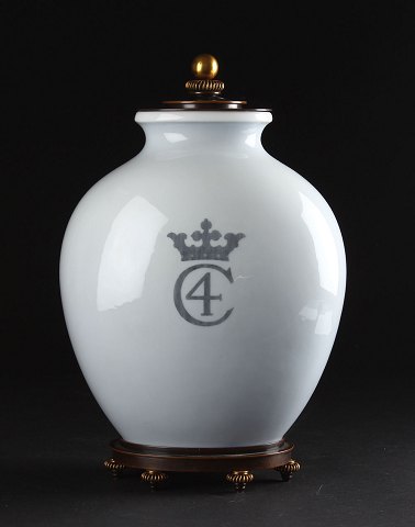Royal Copenhagen Unique Vase By Theodor Kjølner from 1942 with bronze lid and stand by Knud Andersen. Total height with lid and stand is 38cm.