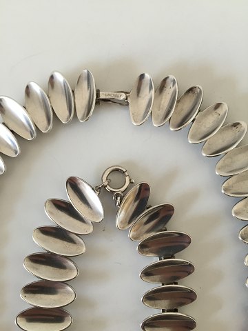 Anton Michelsen Sterling Silver Necklace and Bracelet designed in Nanna Ditzel Style. Measures 19 cm / 7 31/64" and 38 cm / 14 61/64". Bracelet weighs 22.7 g / 0.79 oz., necklace weighs 50.3 g / 1.77 oz.Marked M, Sterling Denmark on the necklace. The bracelet has had the claps replaced, so that is unmarked.