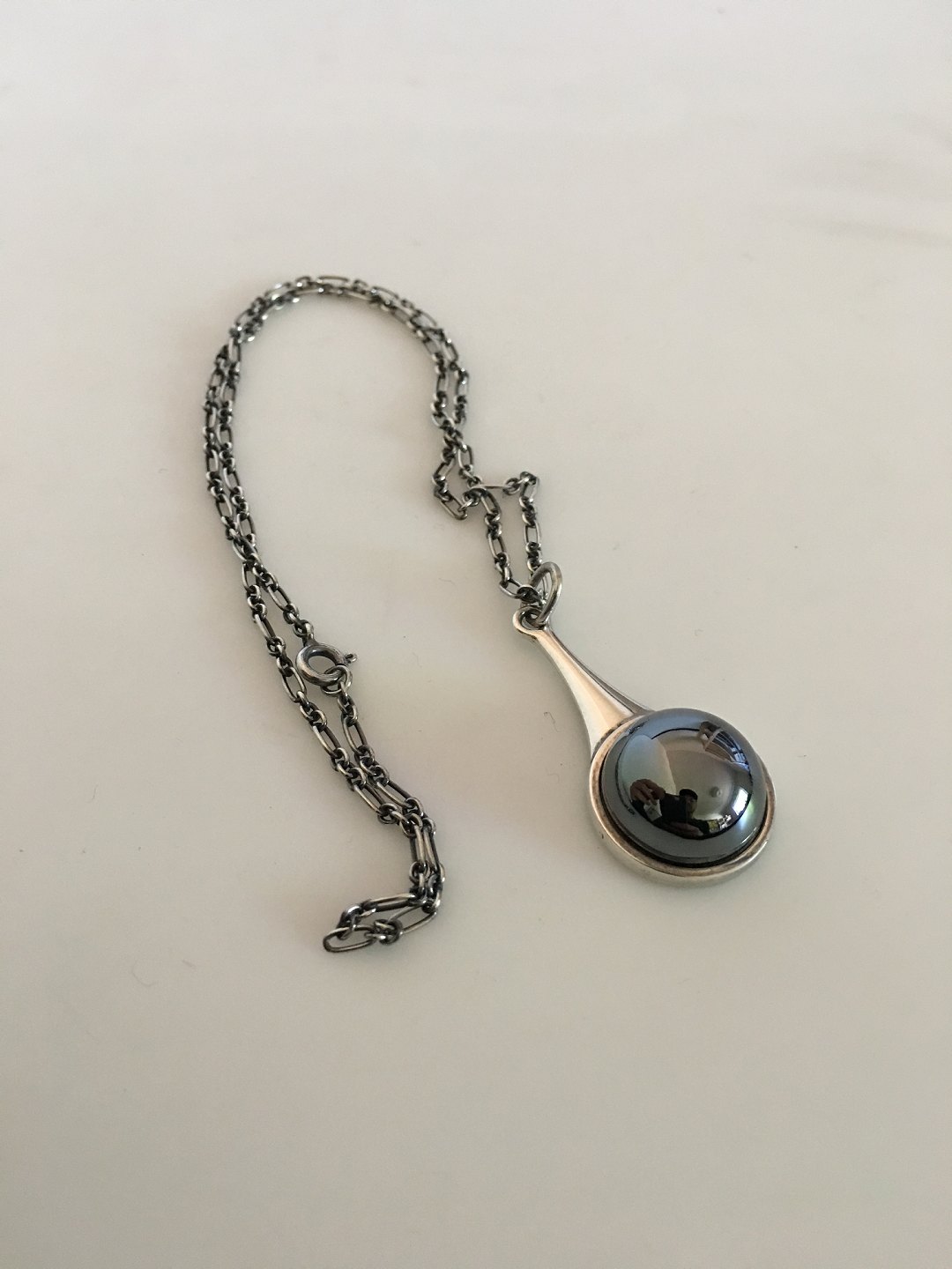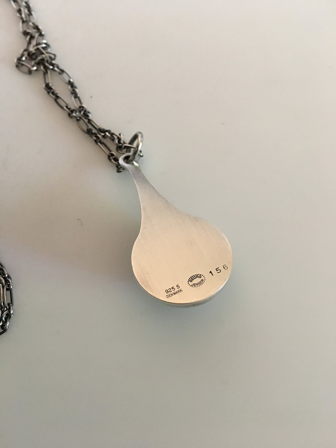 Georg Jensen Sterling Silver Pendant Hematite No 156. Measures 4 cm / 1 37/64 in. and chain 45.5 cm / 17 29/32 in. Weighs 19.7 g / 0.69 oz.