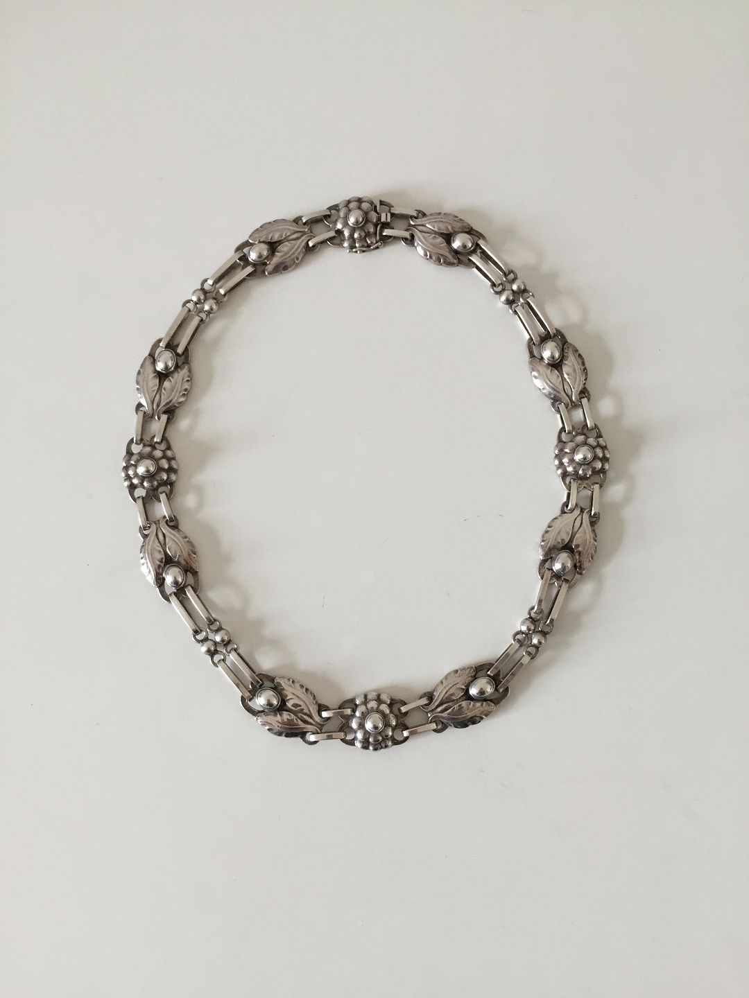 Georg Jensen Sterling Silver Necklace No 1. Measures 43,1cm / 17". With old marks. We have a similar necklace with a different lock. We also have the bracelet and earrings to match. Weighs 53g / 1.85oz