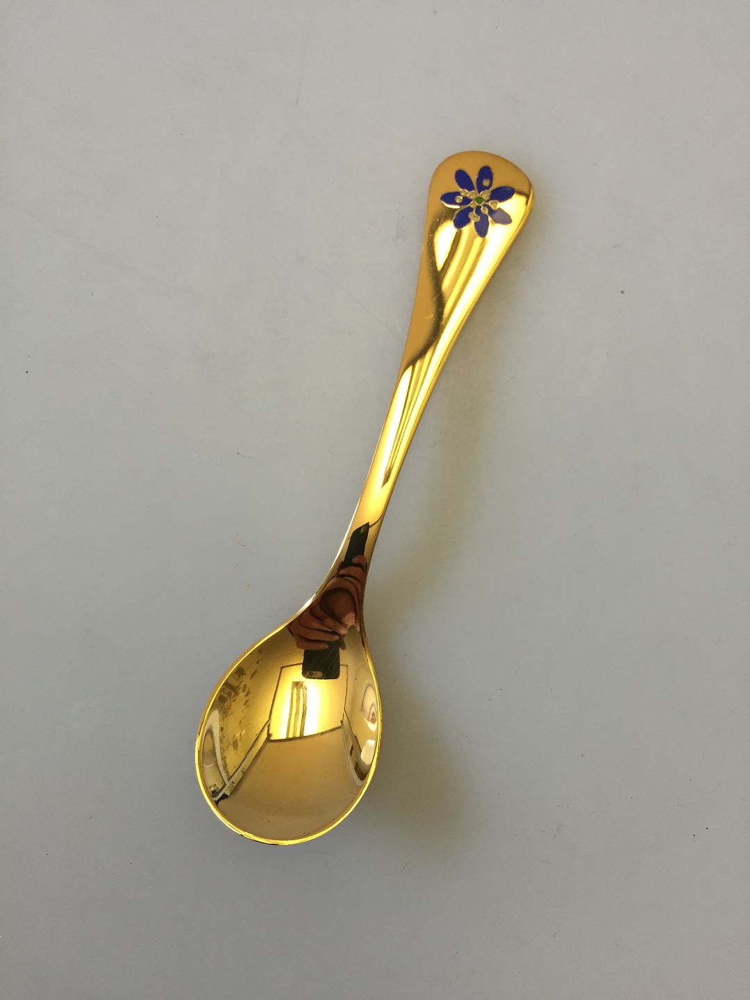 Georg Jensen Annual Teaspoon 1986 i gilded Sterling Silver with enamel. Measures 11 cm (4 21/64").