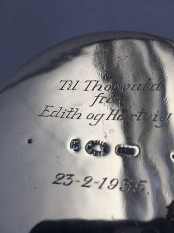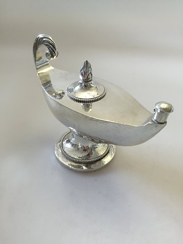 Mogens Ballin Large Oil Lamp in Silver. Measures 19cm x 14cm ( 7 1/2" x 5 1/2"). Weighs 351 gram / 12.4 oz. Has inscription on the bottom, but that can be removed at No charge.