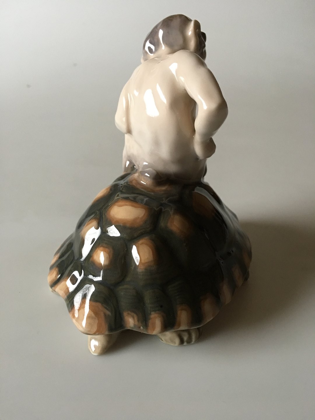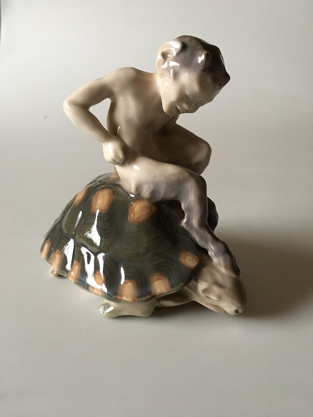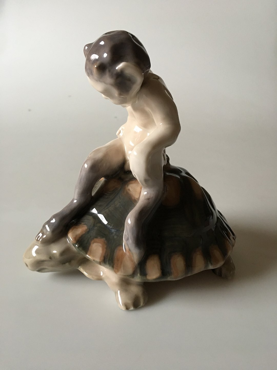 Royal Copenhagen Faun/Pan on turtle No 1880. Measures 13cm x 13cm and is designed by Knud Kyhn. Little chips on one foot. 1st quality