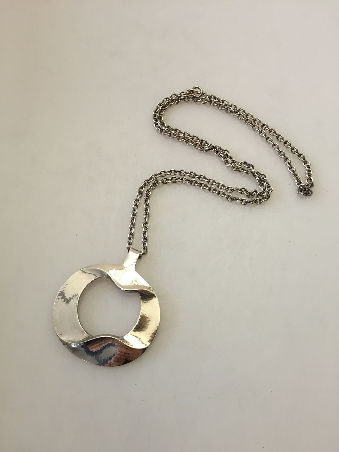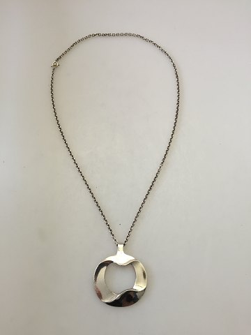 Georg Jensen Henning Koppel Sterling Silver Pendant with Chain No 121. Pendant measure 6.5 cm x 6 cm / 2 1/2 in. x 2 1/3 in. Chain measures 70 cm / 27 9/16 in. Weighs 43 g / 1.60 oz.