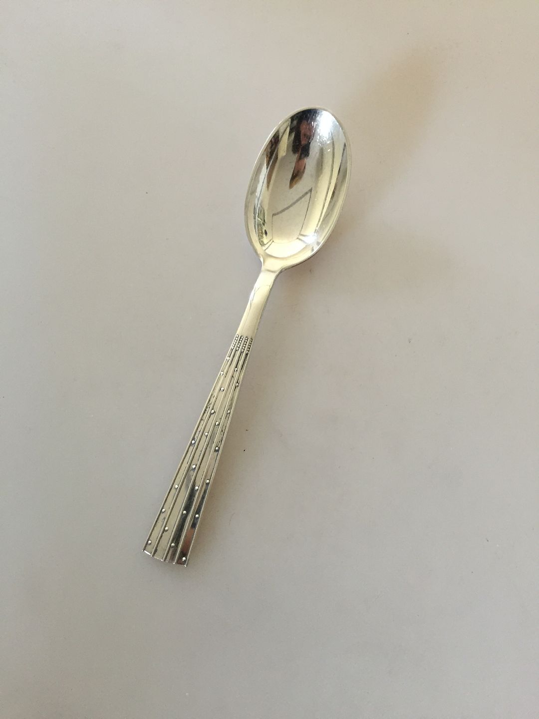 Champagne O. V. Mogensen Silver Dessert Spoon. Measures 17,3 cm (6 13/16").