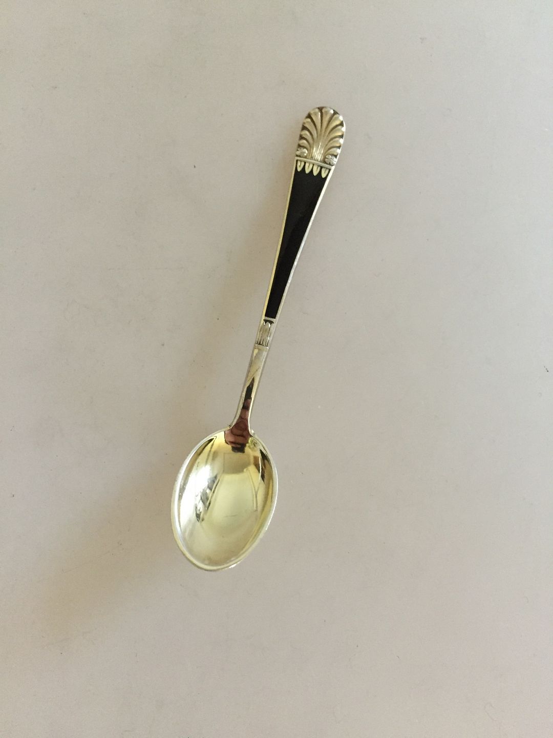 J. Tostrup Sterling Silver Mocca Spoons set of 8 with Enamel from Norway. Measures 9,5 cm (3 47/64")