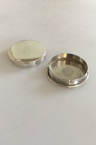 Pill Box in Silver or sweetener tablet holder. Diameter measures 4 cm (1 37/64"). Height measures 1 cm (0 25/64")