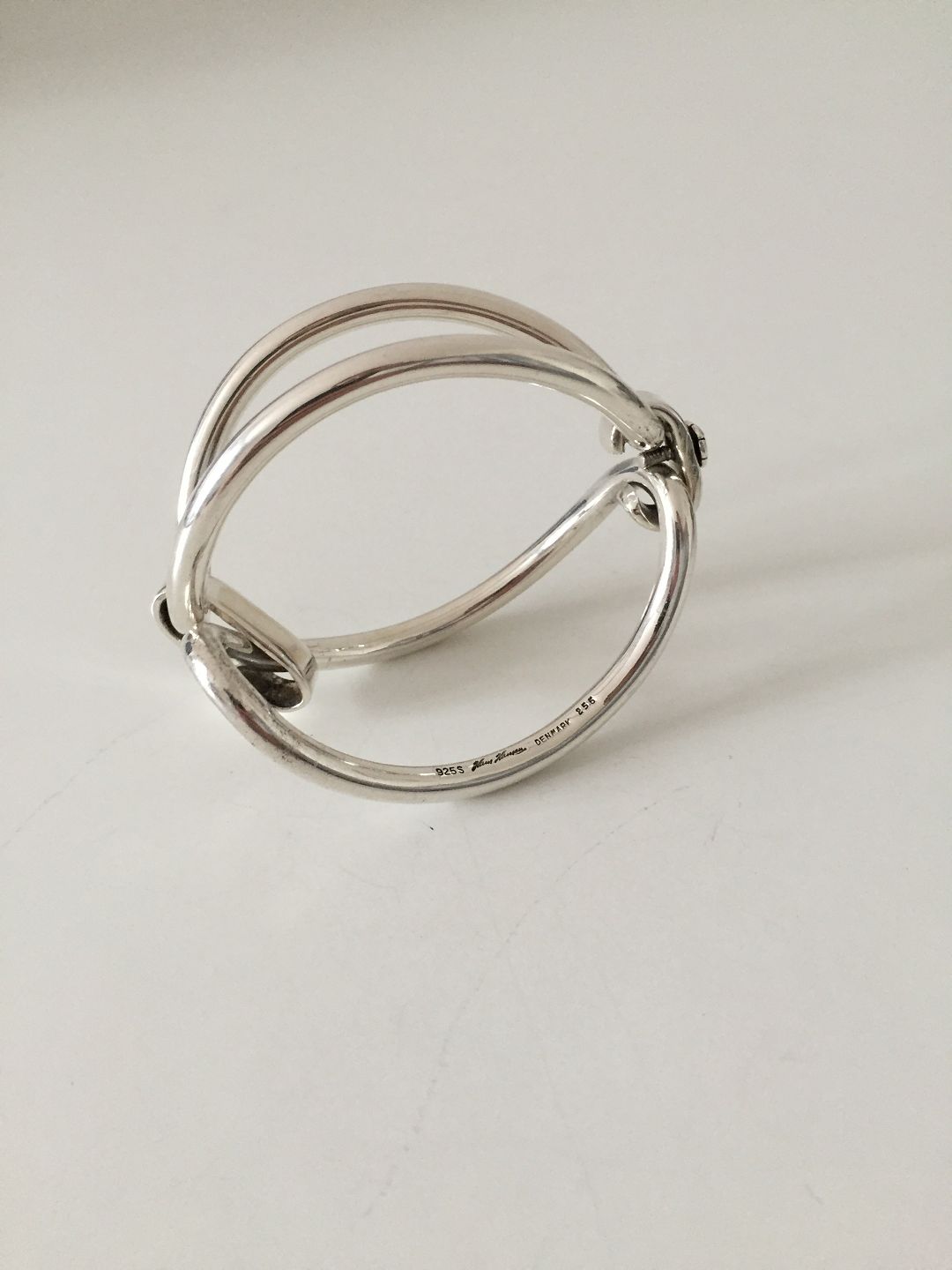 Hans Hansen Sterling Silver Bracelet No 258. Measures 5,4cm dia and 14,5cm long ( 2 1/8" x 5 7/10"). Weighs 82grams / 2.9oz.