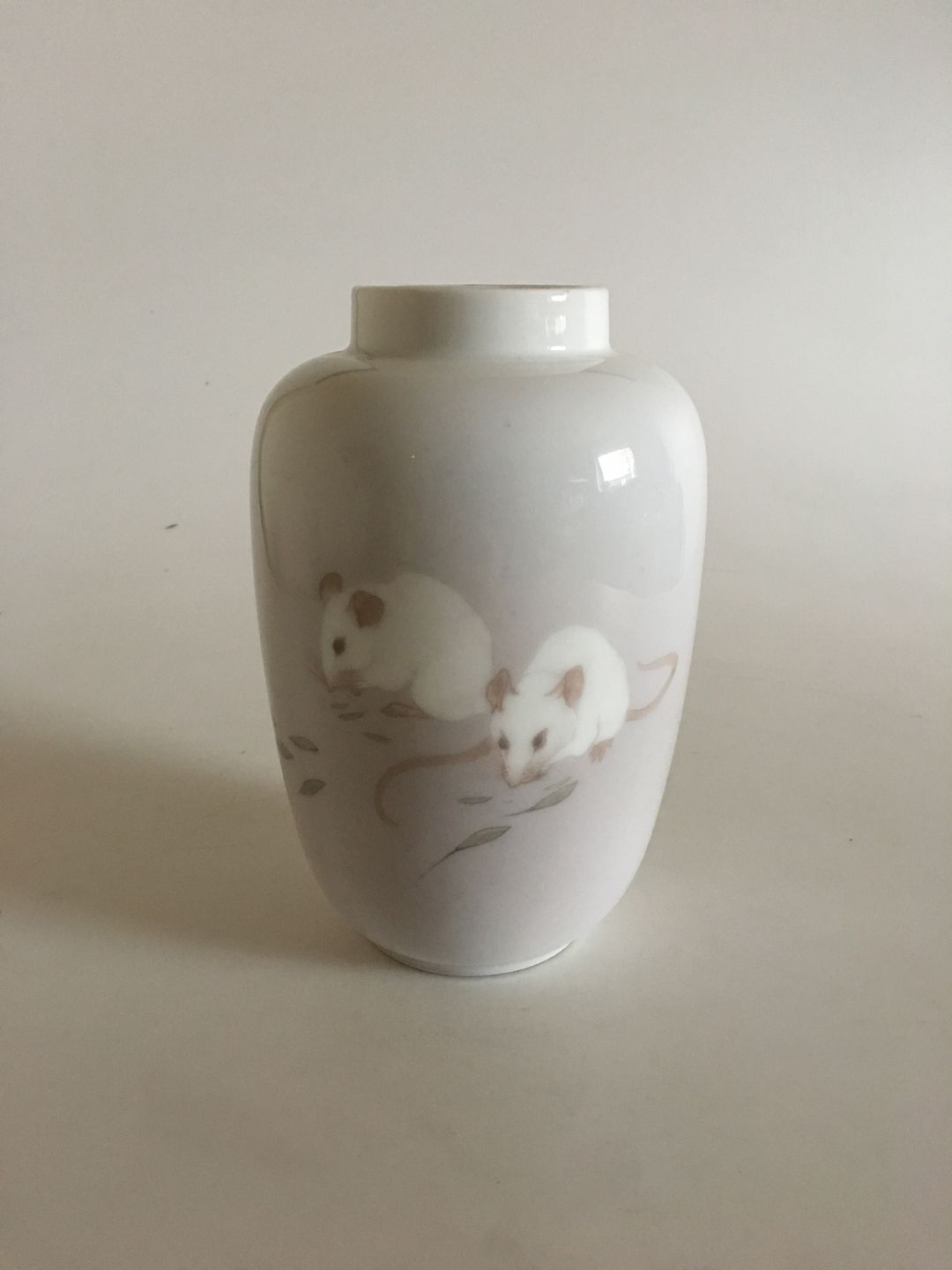 Royal Copenhagen Art Nouveau Unique vase with mice by Frederik August Hallin from April 1894. Measures 17 cm high (6 11/16"). Opening measures 6 cm in diameter (2 23/64")