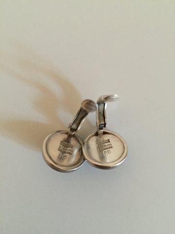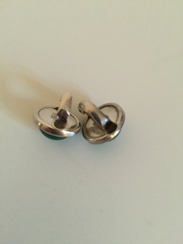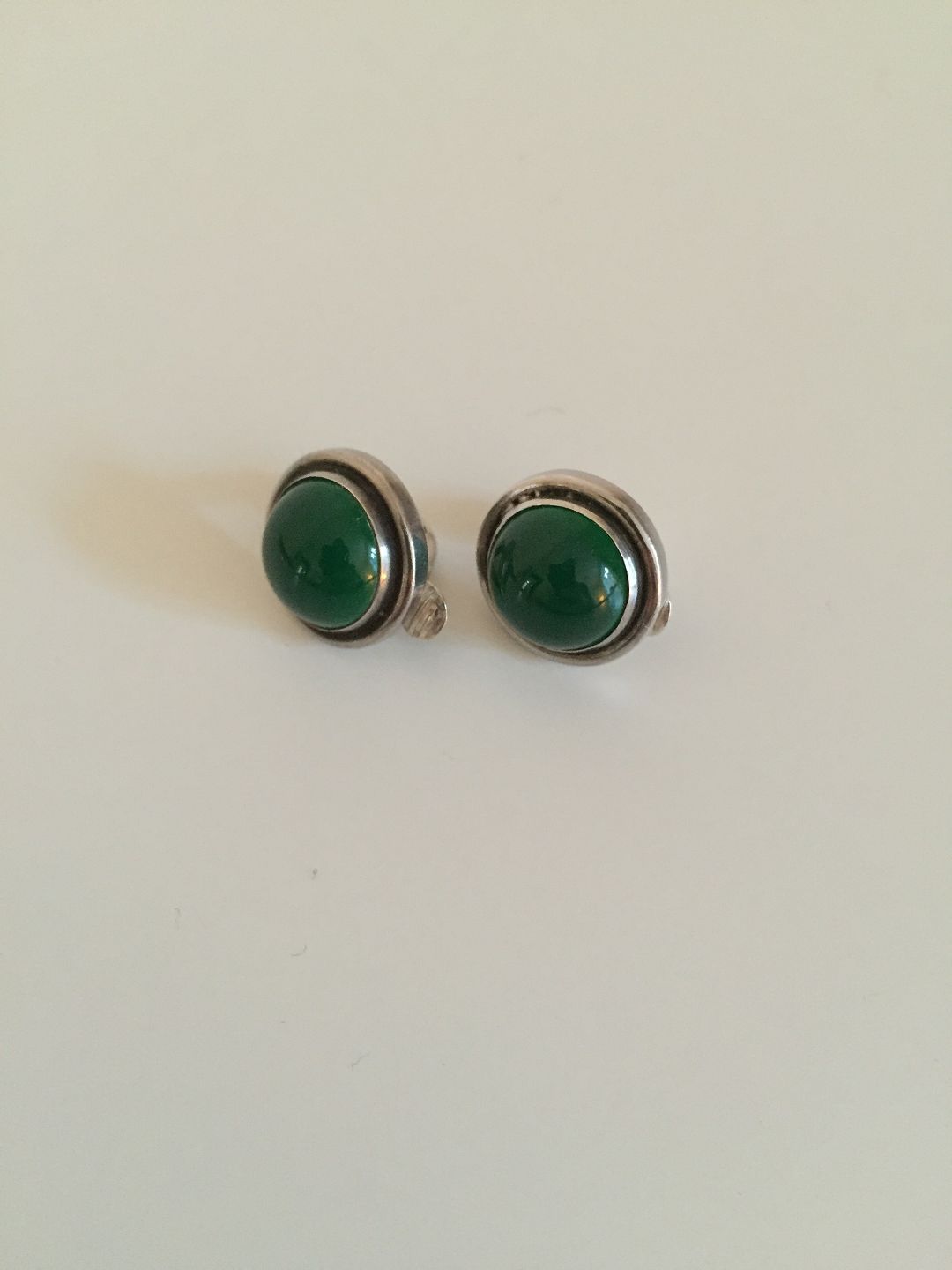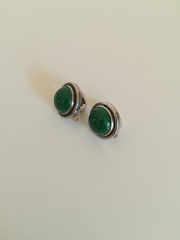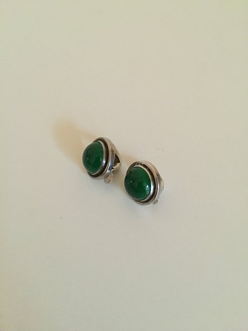 Georg Jensen Sterling Silver Earclips No 86 with Green Agate. Designed by Harald Nielsen. From 1945-1951