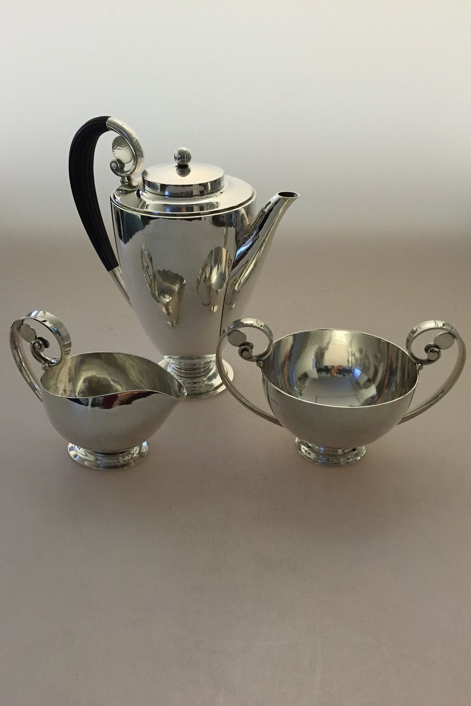 Georg Jensen Sterling Silver Johan Rohde Coffee set with Coffee Pot No 321 and Creamer and Sugarbowl No 321A