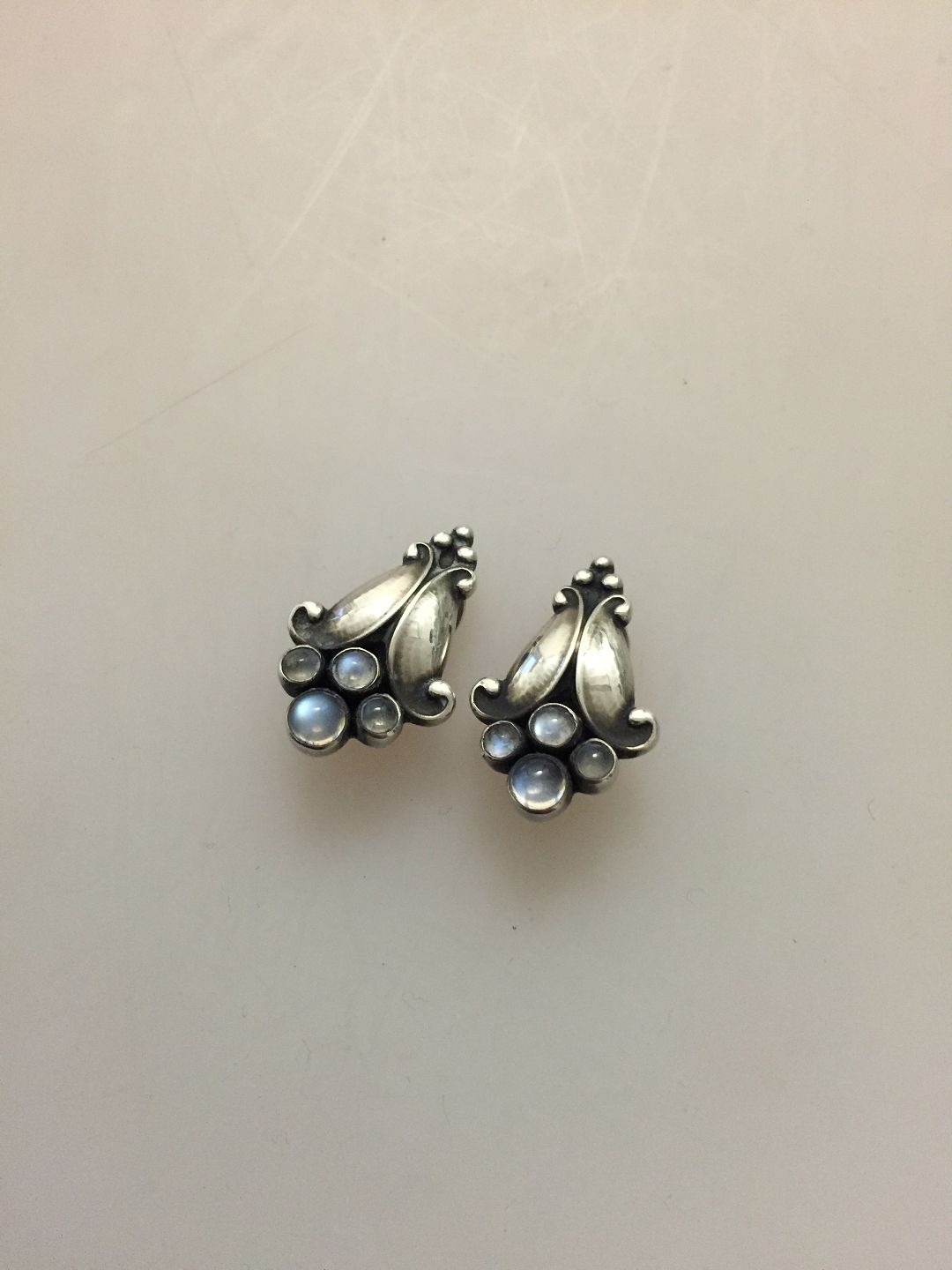Georg Jensen Sterling Silver and Moonstone Earclips No 32B from after 1945.