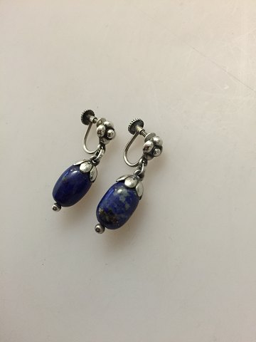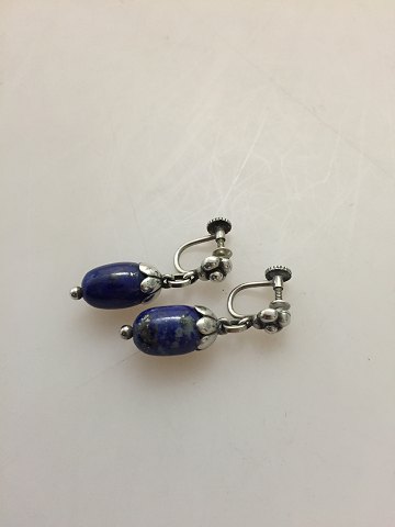 Georg Jensen Sterling Silver and Lapis Lazuli Earclips No 4