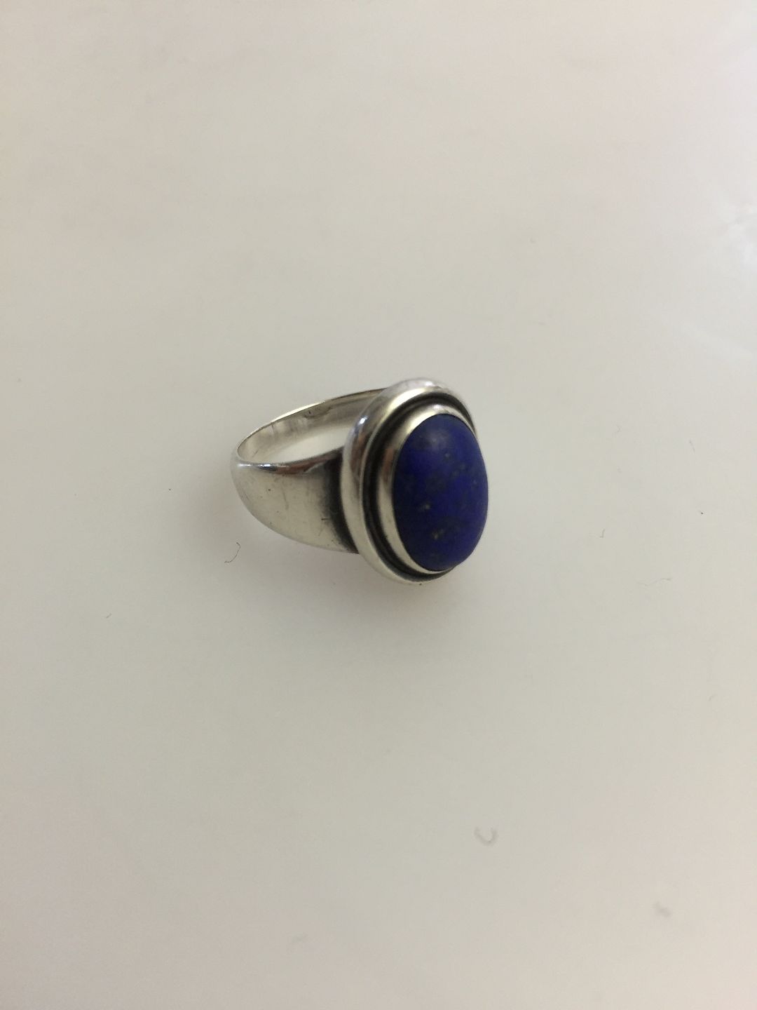 Georg Jensen Sterling Silver Ring No 46B Ornamented with Lapis Lazuli. From 1930-1945