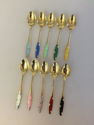 A set of 10 Coffee Spoons in Silver and Enamel from Frigast