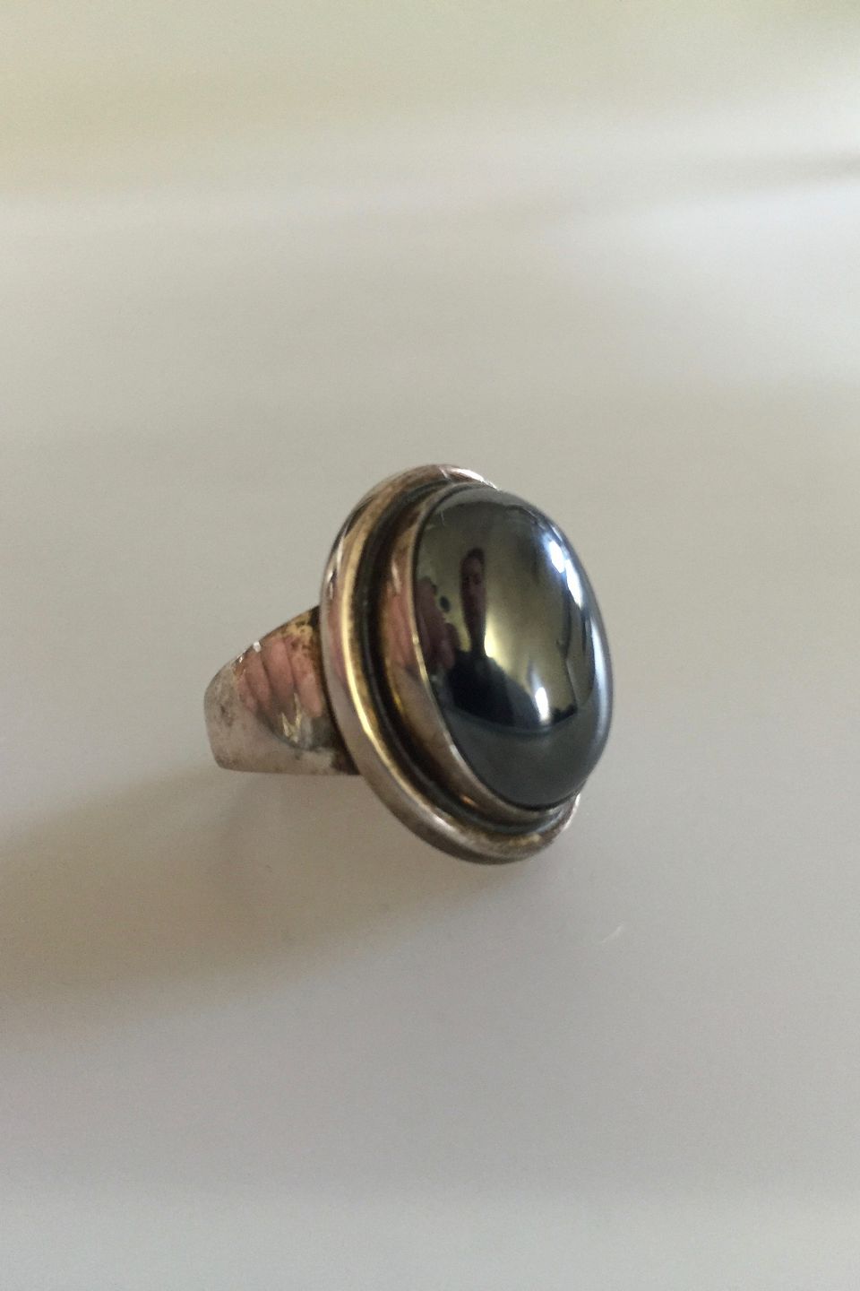 Georg Jensen Sterling Silver Ring No 46A with Hematite. From after 1945.
