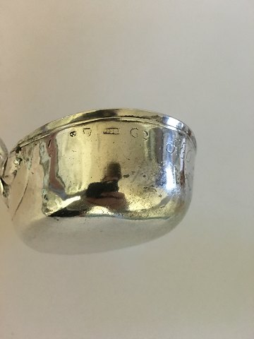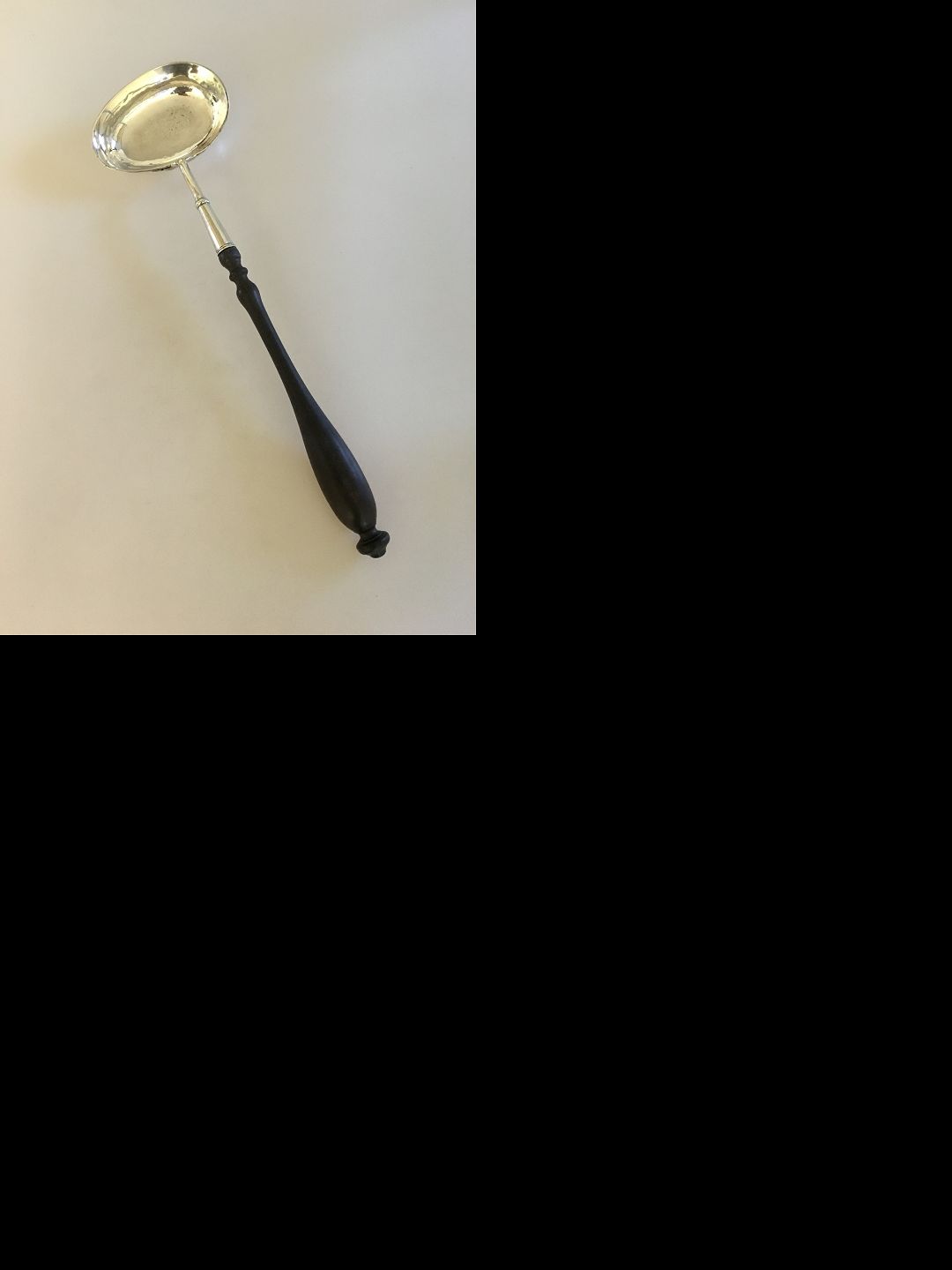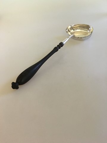 Large antique silver punch spoon with wooden shaft.