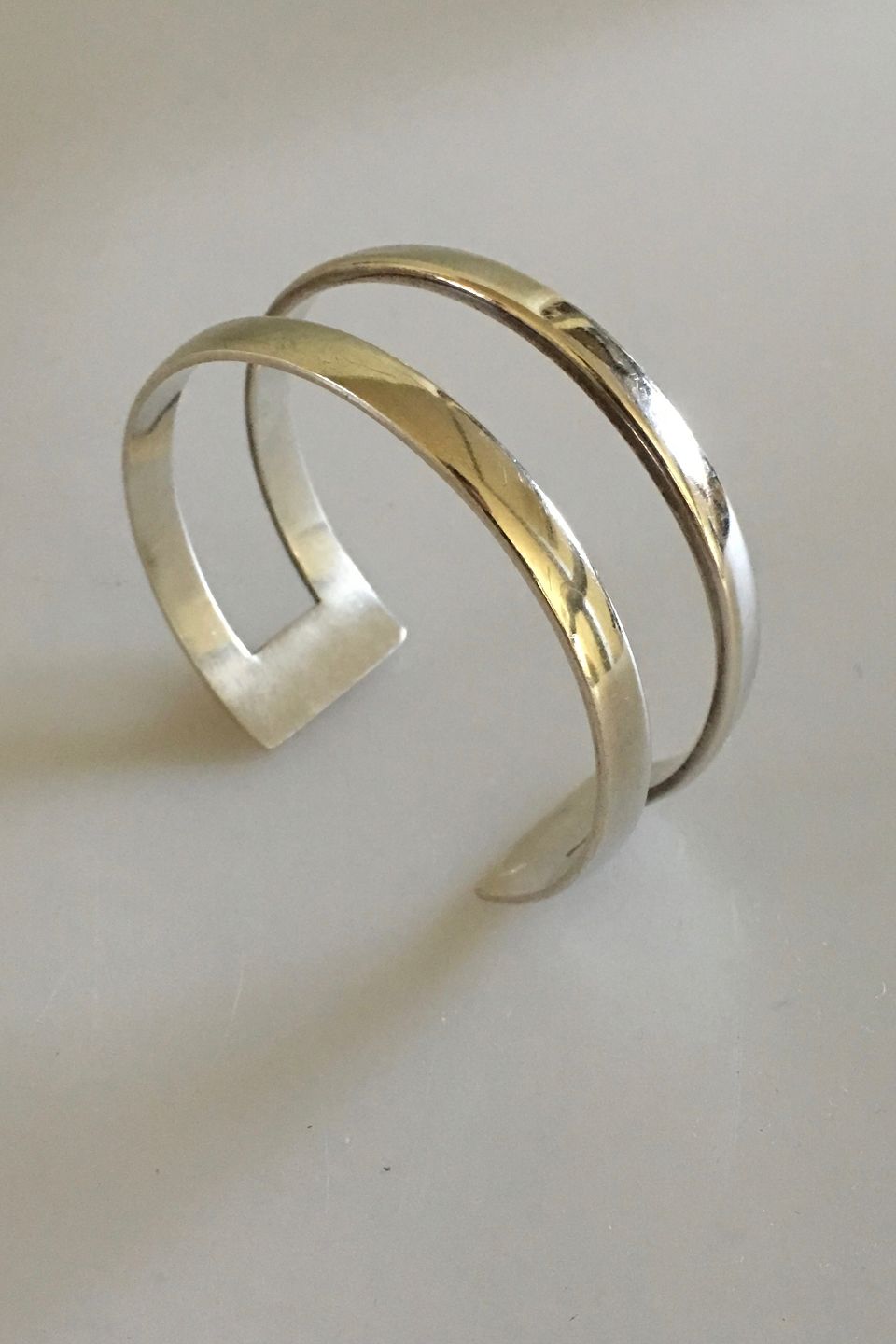 Hans Hansen Sterling Silver Armring. Measures 6 x 5.5 cm dia. 2.4 cm W. Weighs 38 g / 1.30 oz.