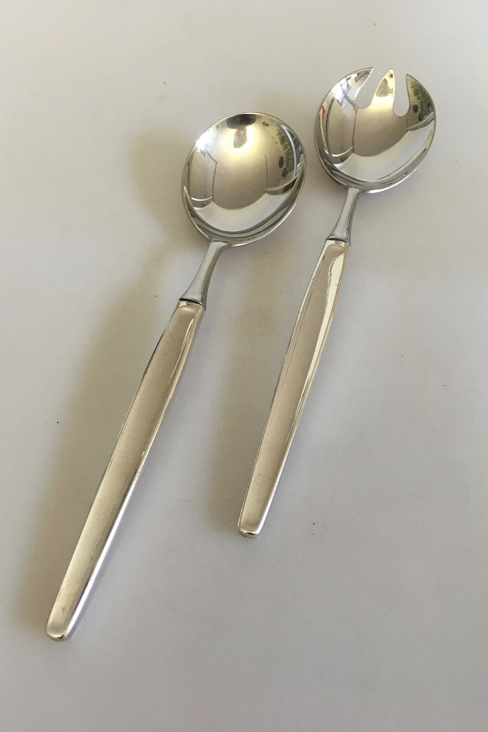 Georg Jensen Sterling Cypress Serving Set / Salad Set No 132. Design 1954 by Tias Eckhoff. 23 cm / 9 1/16"