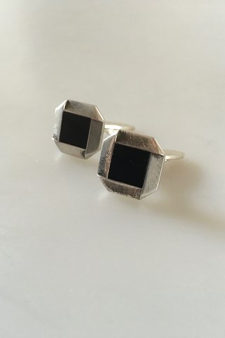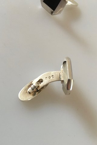 Georg Jensen Sterling Silver Cuff Links with Black Onyx No 202. From after 1945.