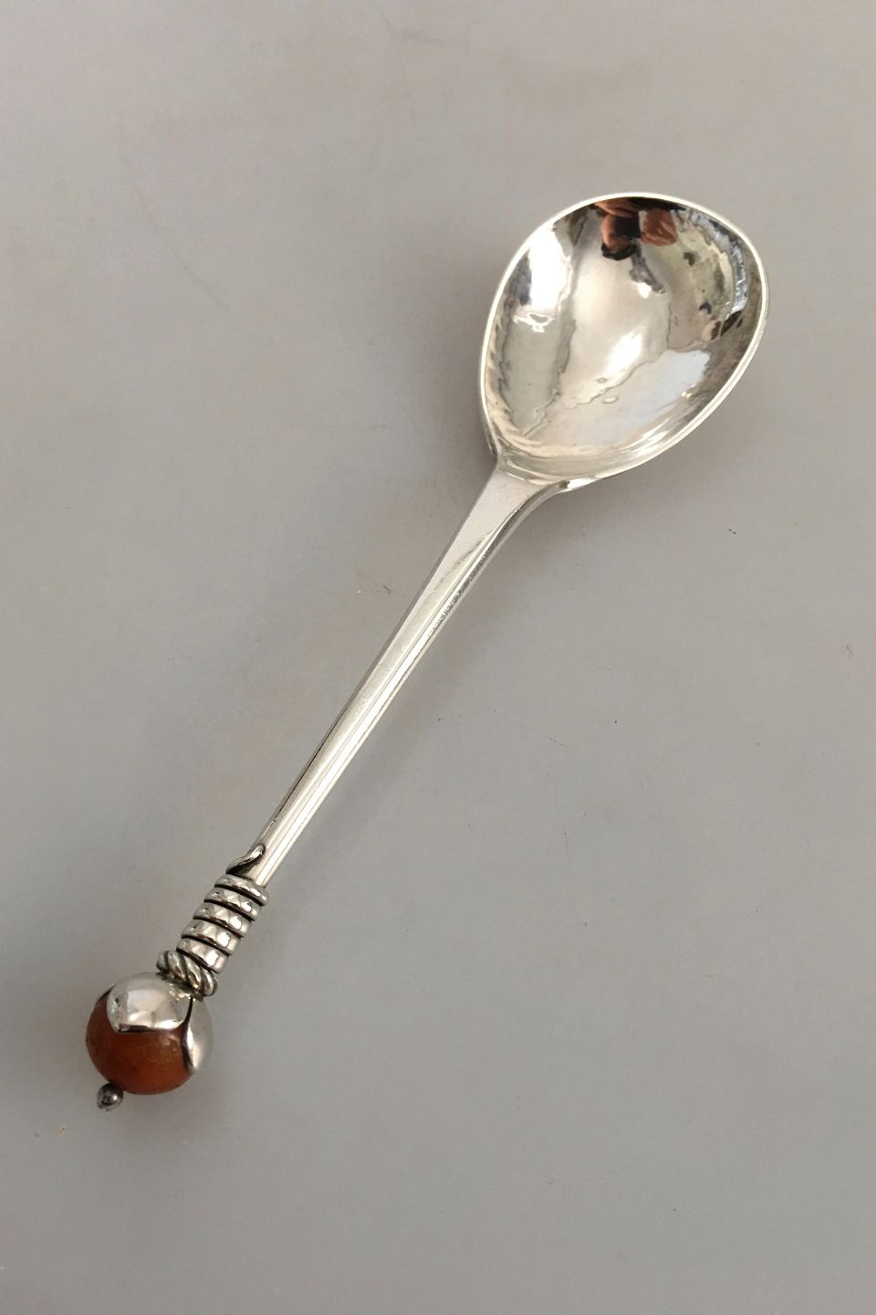 Mogens Ballin Silver Compote Spoon ornamented with Amber Stone. Measures 17.5 cm / 6 57/64". Weighs 44 g / 1.60 oz