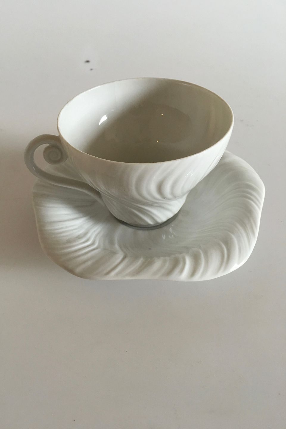 Royal Copenhagen White Triton Tea Cup / Large Coffee Cup and Saucer No 14194. Cup is 9 cm dia (3 35/64"). Design by Arje Griegst.