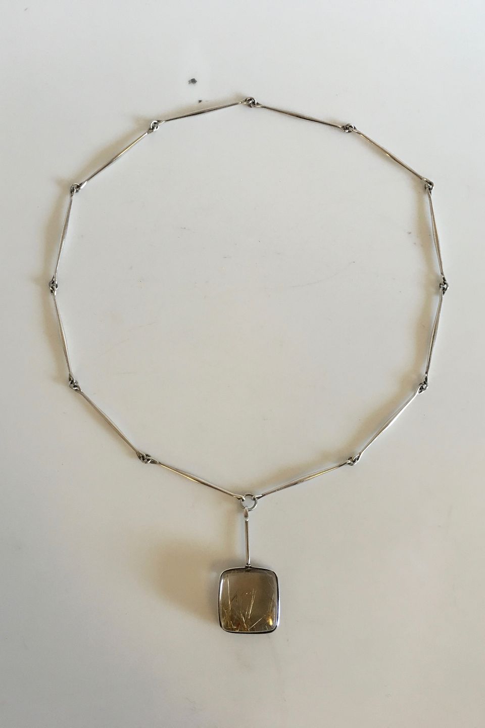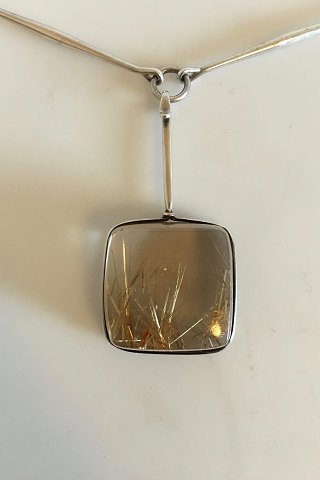 Georg Jensen Sterling Silver Necklace No 175 with Pendant No 132 made of Rutil Quartz. Chain is 60 cm Long. Pendant measures 3 x 3 x 1.3 cm (1 3/16" x 1 3/16" x 0 33/64"). Combined Weight is 86 g / 3.05 oz.