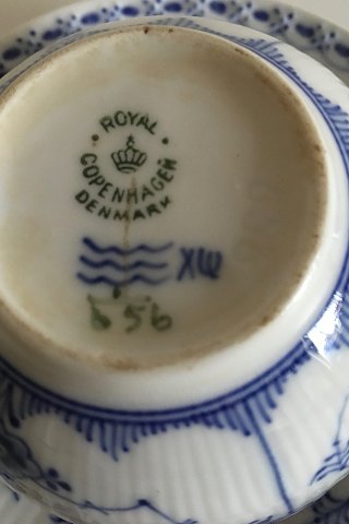 Royal Copenhagen Blue Flute Half Lace Large Tea Cup and Saucer No 656. Cup 5.5 cm x 10.5 cm (2 11/64" x 4 9/64").