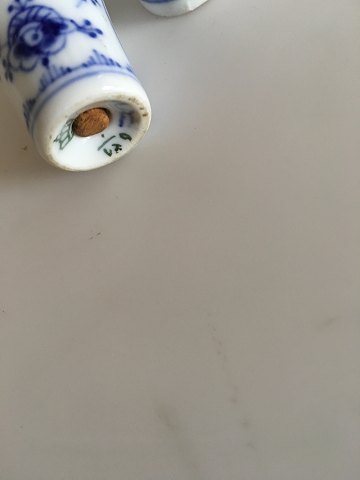 Royal Copenhagen Blue Fluted Plain Salt & Pepper Shaker Set No 439. 6.5 cm (2 9/16"). The shakers both need a new bottom lock piece.