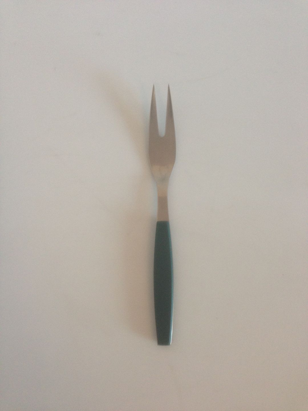 Georg Jensen Stainless Green Strata Meat Fork. Measures 18.5 cm / 7 9/32 in.