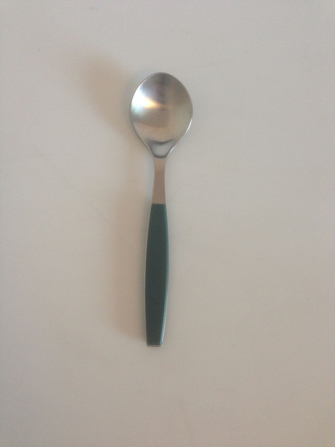 Georg Jensen Stainless Green Strata Dessert Spoon. Measures 16.5 cm / 6 1/2 in.