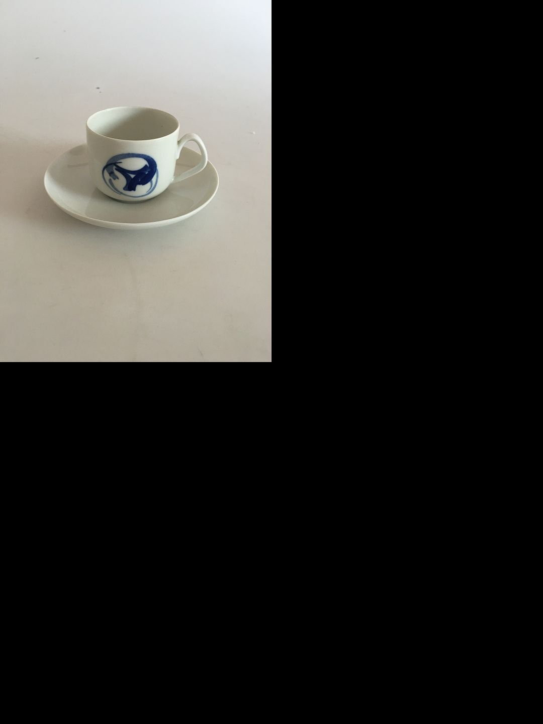 Bing & Grondahl Blue Koppel Coffee Cup and Saucer No 305. Cup measures 6 x 7 cm (2 23/64" x 2 3/4")