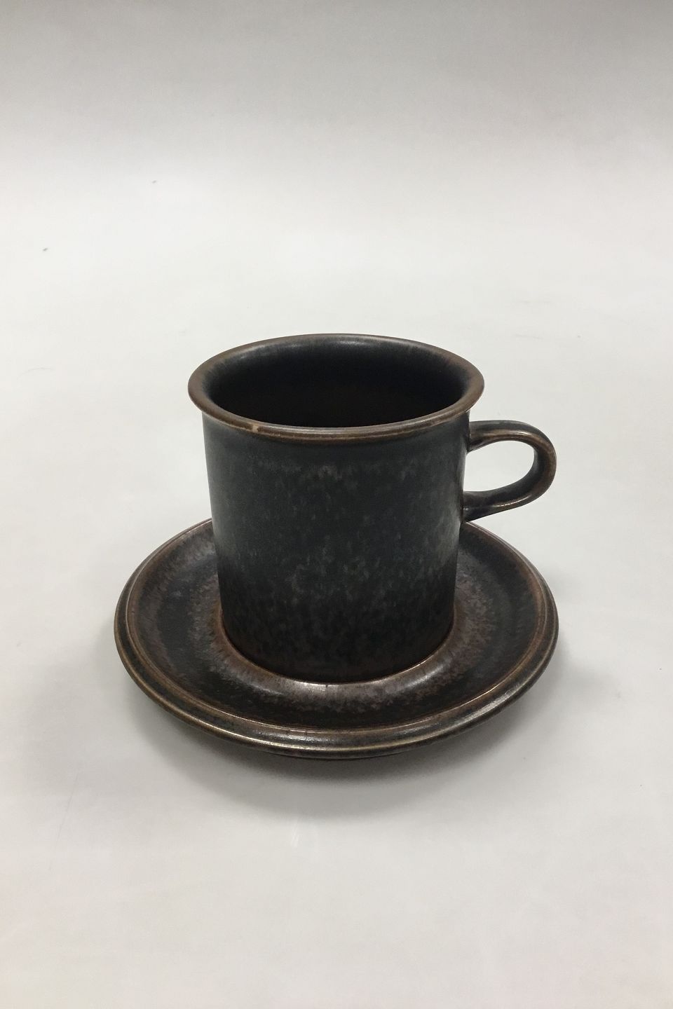 Arabia Stoneware Ruska Coffee Mug with Saucer. Measures 8 x 8.5 cm (3 5/32" x 3 11/32").