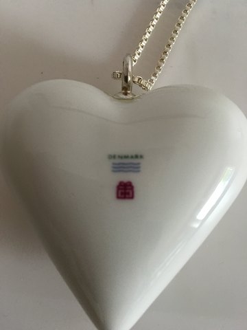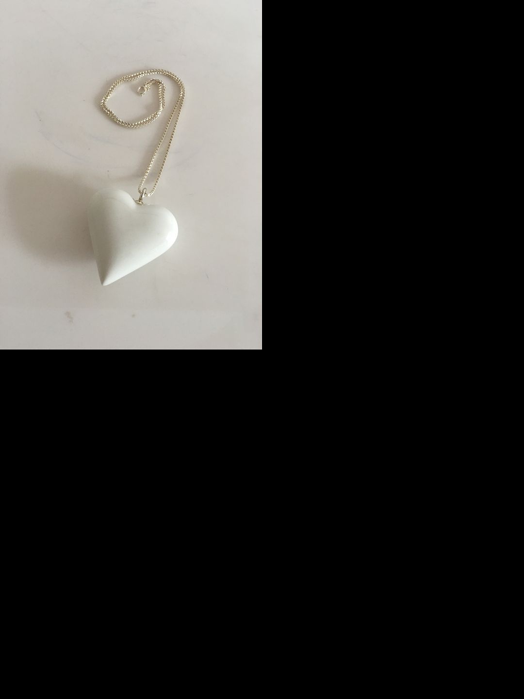 Royal Copenhagen Sterling Silver Necklace with White Porcelain Heart Pendant. Chain measures 60 cm (23 5/8"). The Heart measures 6 x 6 cm (2 23/64 x 2 23/64")