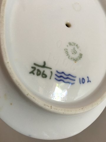 Royal Copenhagen Blue Fluted Plain Sauce Bowl with Handle and Saucer No 2061. 16.5 x 6 cm
