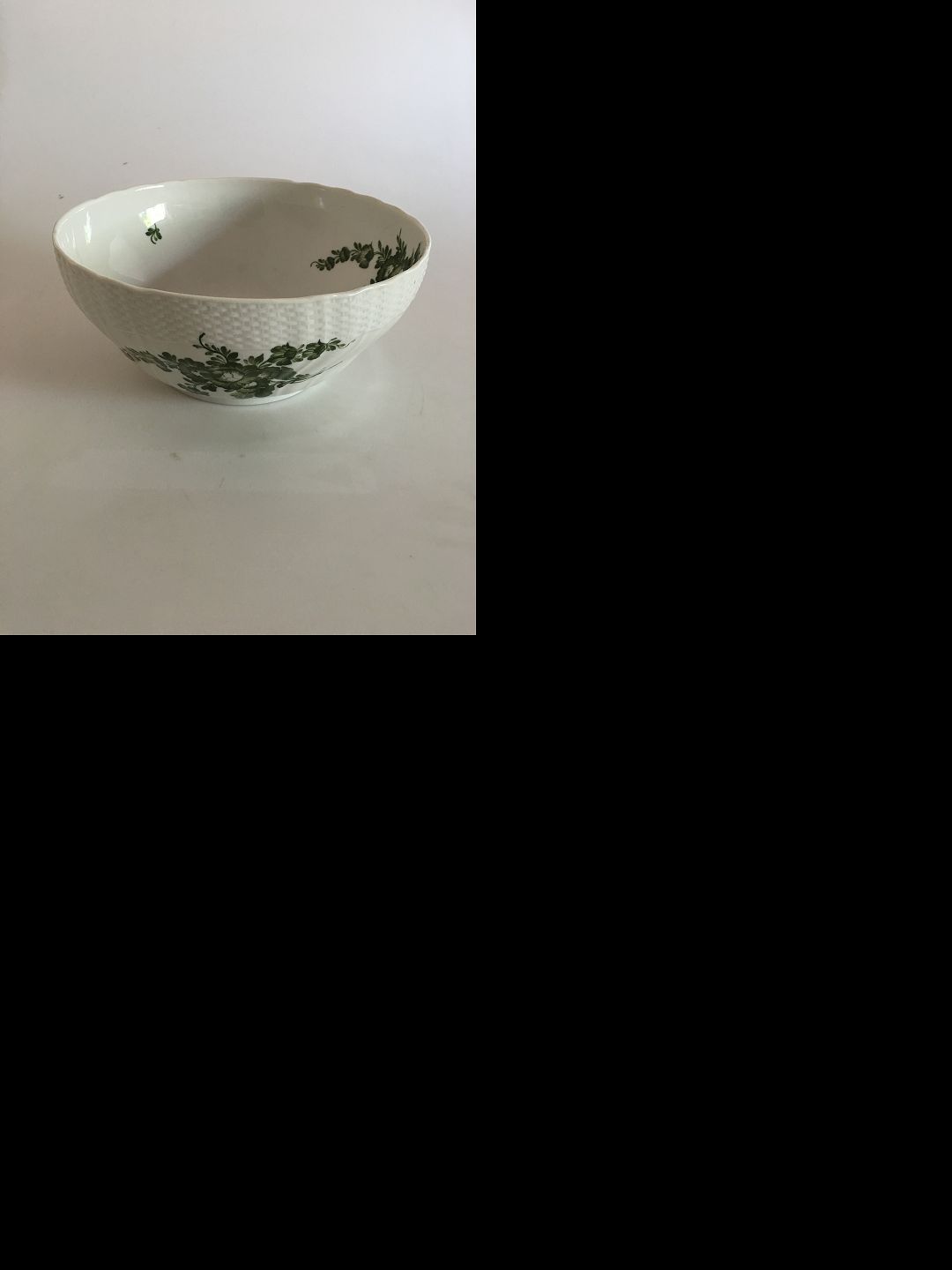 Royal Copenhagen Green Flower Large Salad Bowl No 1643. Measures 10.4 x 23.5 cm (4 3/32" x 9 1/4")