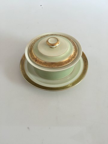 Royal Copenhagen Dagmar Marmelade Bowl with Lid and Attached Saucer no. 9733. Dia:16 cm (6 19/64"). H: 7 cm (2 3/4"). Designed by Thorkild Olsen in the 1930s