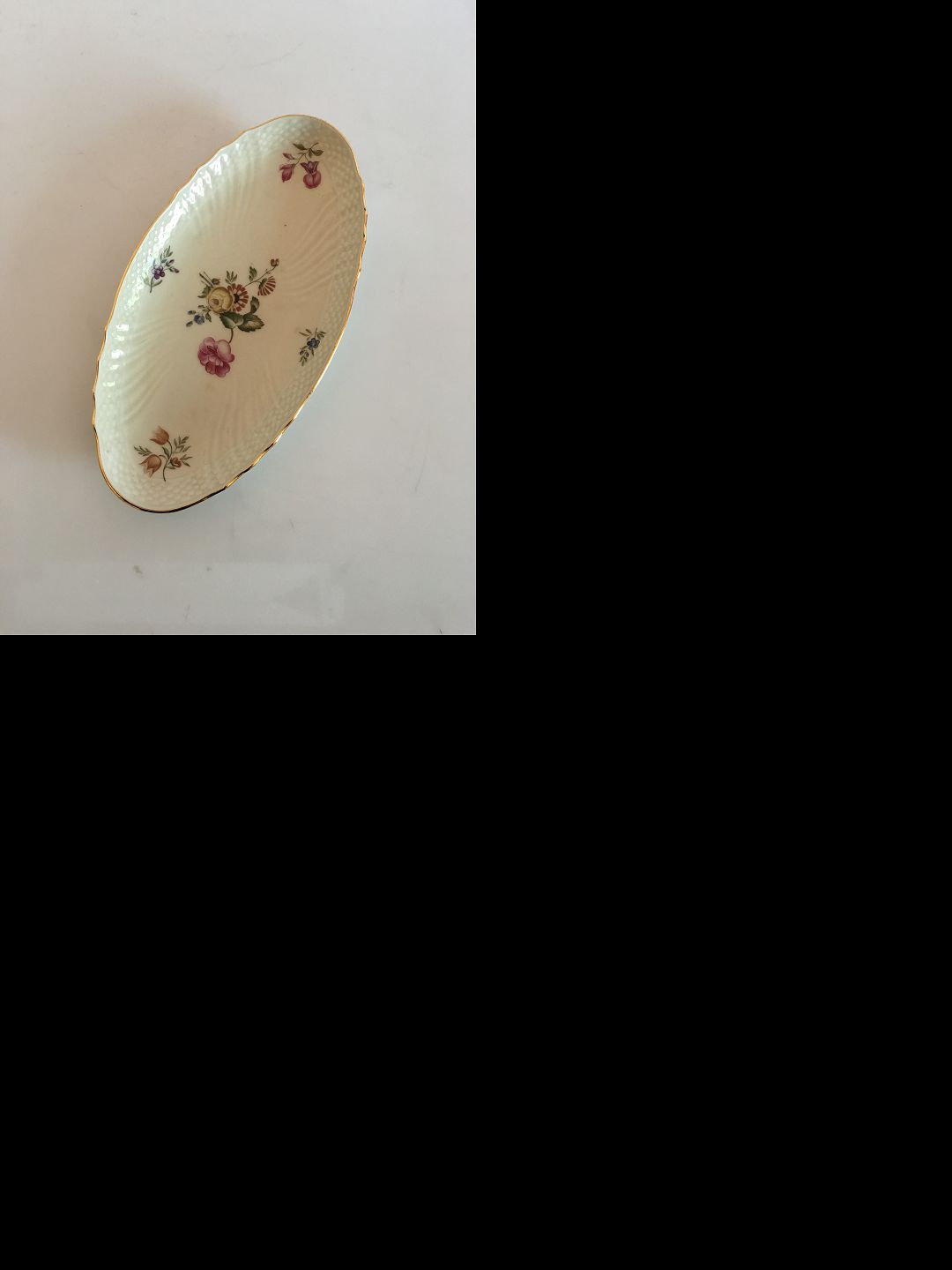 Royal Copenhagen Frijsenborg Oblong Dish No. 1689. Measures 12.5 cm x 24 cm (4 9/10 inch. x 7 1/10 inch.) Creme colored with flower motifs named after the Danish nobel county of Frijsenborg.