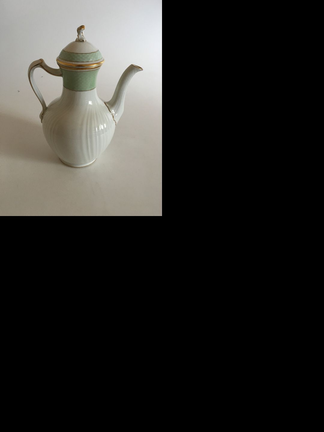 Royal Copenhagen Green Curved Coffee Pot with Gold No 1794. Measures without lid 21 cm tall. (8 17/64")