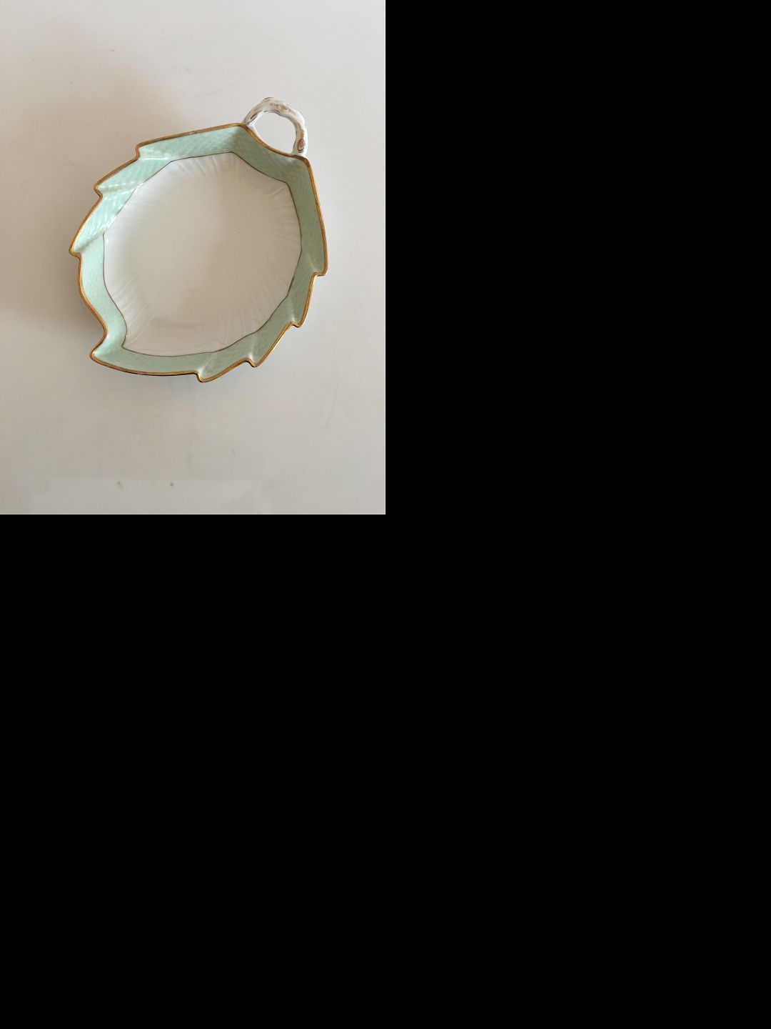 Royal Copenhagen Green Curved with Gold Leaf Shaped Assiette No 1866. 19.5 cm (7 43/64"). The gold has a bit of wear to it.