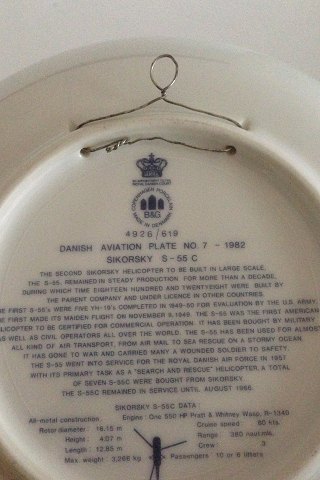 Danish Aviation Plate No.7 - 1982 Sikorsky S-55C 1957-1966.